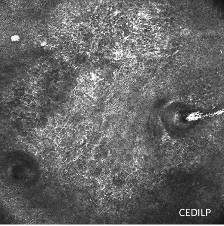detectar la presencia de la lesión no visible con luz natural.(microscopía confocal obtenida en CEDILP)